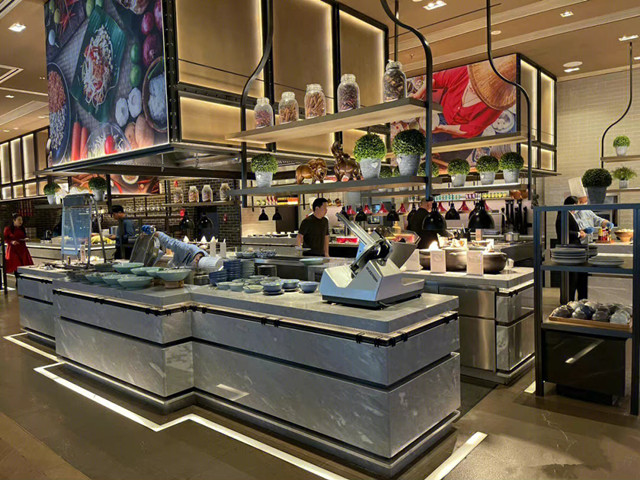酒店設(shè)計(jì)自助餐使用不同款式大理石案例