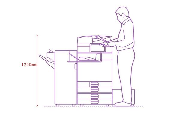 影印室是打印機(jī)、碎紙機(jī)、掃描儀、打印紙張存放的地方,可進(jìn)行文件裁剪、訂裝等工作。柜式打印機(jī)的安裝高度為1.2mm。連體打印機(jī)需預(yù)留出紙口的寬度。