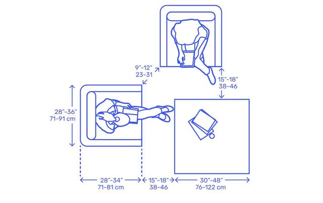 6.5.1 小型接待區(qū)一般是沙發(fā)座椅組合;椅子的尺寸:寬度0.8m~0.9m,高度0.38m~0.45m;沙發(fā)座椅與其它相鄰的臺(tái)面不應(yīng)小于0.38m。