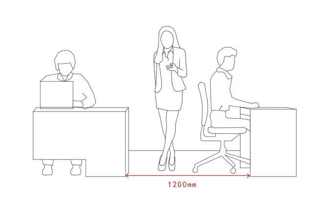 6.2.2 兩個(gè)辦公桌之間的工作過道不應(yīng)少于1.2m。