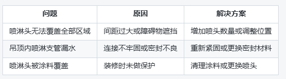 若吊頂內(nèi)存在風(fēng)管、橋架、燈具等設(shè)備,需確保噴淋頭的覆蓋范圍不受影響。